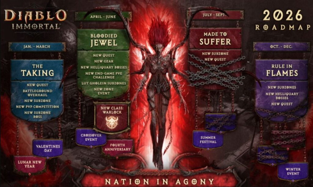 Завершая главную роль Чернокнижника, прокомментируйте, что этот новый класс также появится в Diablo Immortal, практикуя древнее искусство Визжереев, обладая способностями использовать демонов против себя, вызывая порталы ада и получая демоническое оружие, такое как жертвенный клинок Душегуба.