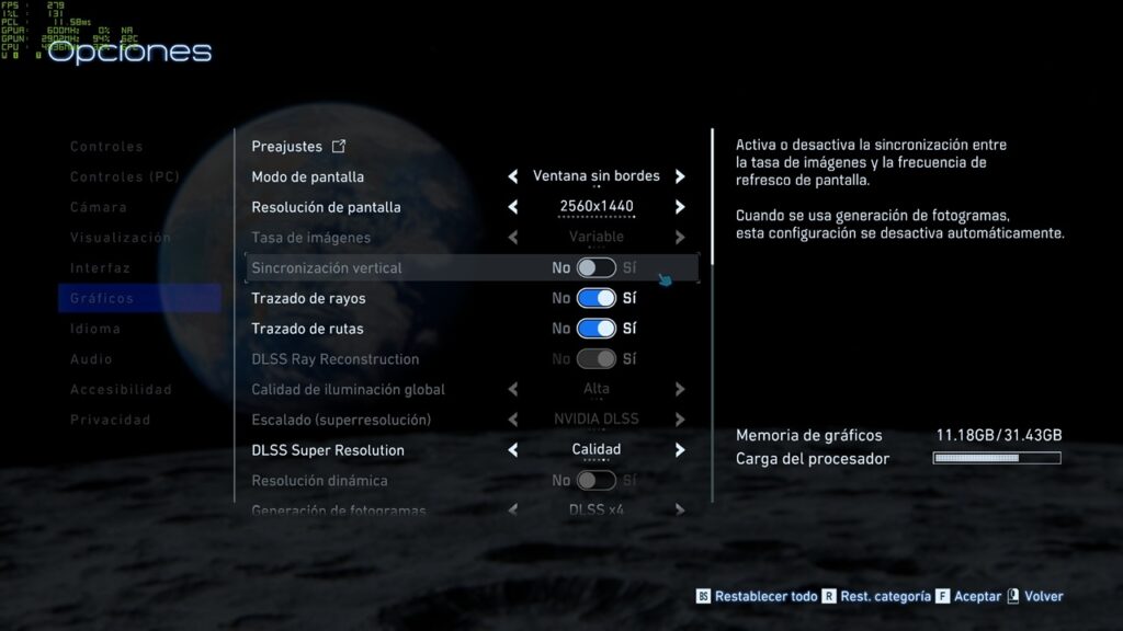 Вот рекомендуемые уровни для игры с построением траектории, активацией DLSS 4 и генерацией кадров: