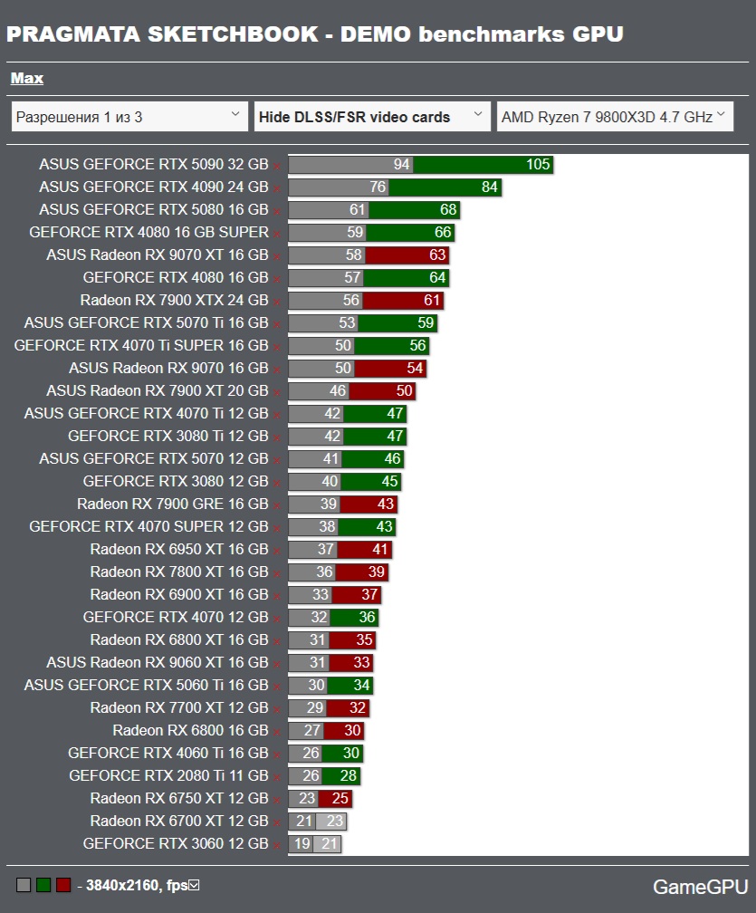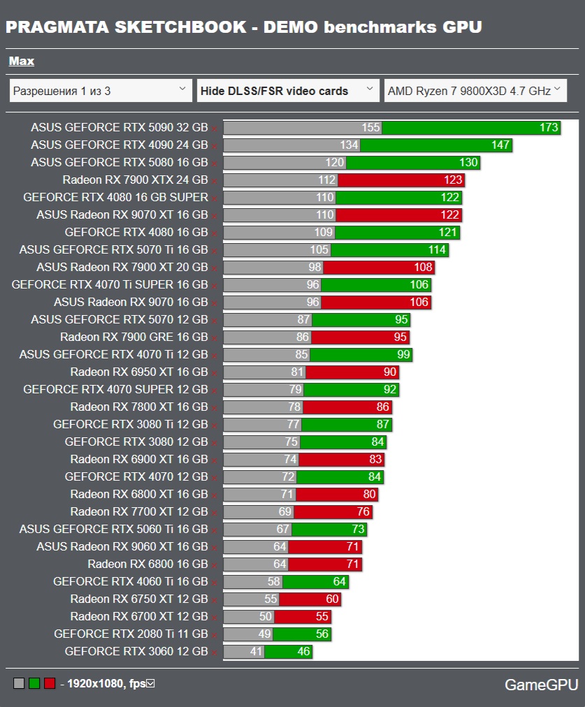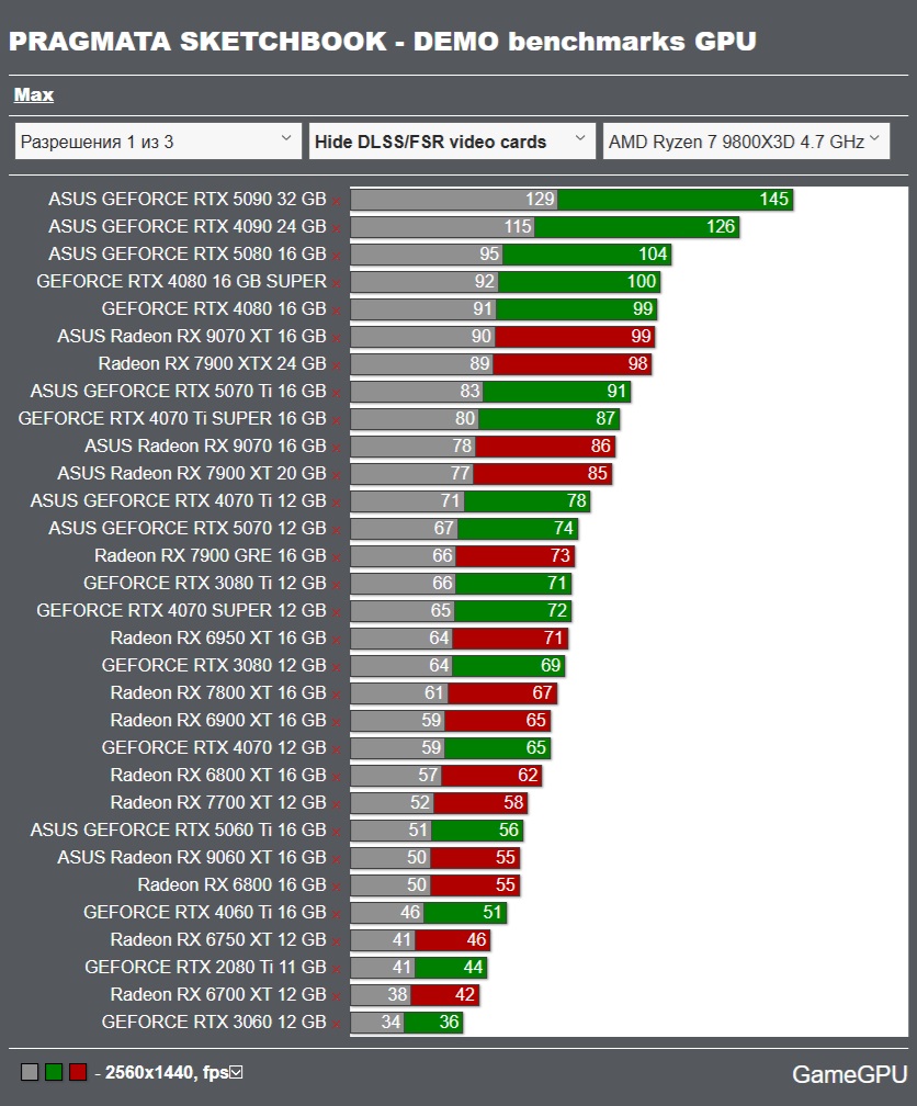 При разрешении 1440p GeForce RTX 3060 способна поддерживать в среднем 36 кадров в секунду, а Radeon RX 6700 XT — в среднем 42 кадра в секунду. В этом случае для поддержания скорости 60 кадров в секунду нам понадобится Radeon RX 6800 XT или GeForce RTX 4070.