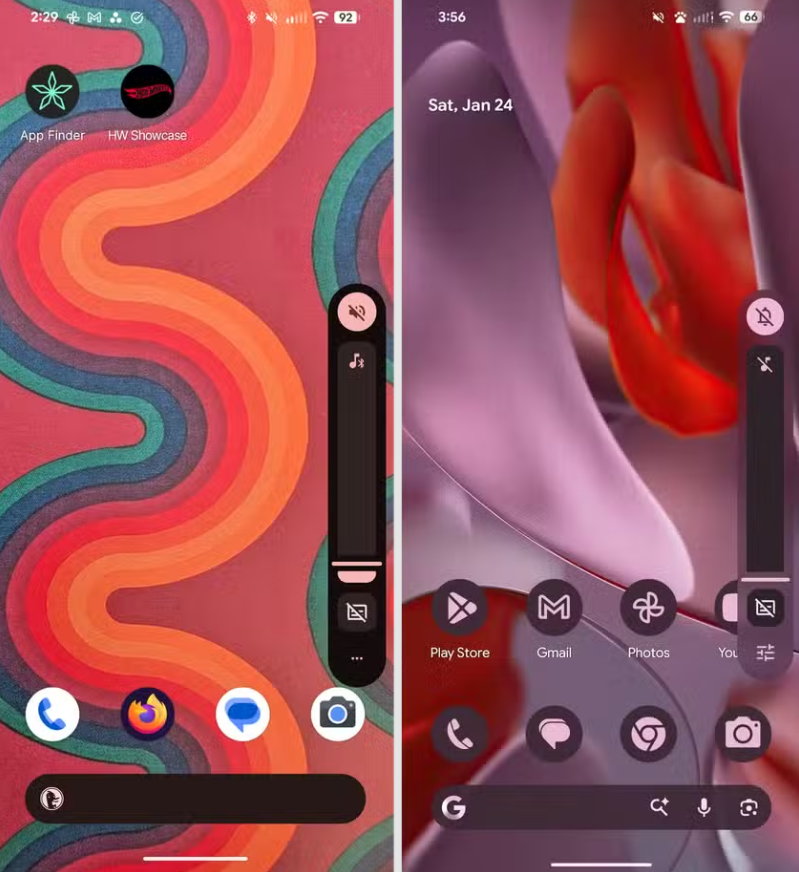 Ожидается, что Google применит этот дизайн ко многим элементам операционной системы, от регулятора громкости до индикатора заряда батареи. Эти элементы по-прежнему будут иметь акцентный цвет, выбранный пользователем. На главном экране вы увидите обои и значки приложений. Если он активирован в приложении, вы сможете увидеть, что находится под ползунком. Полноэкранный режим и меню питания — другие примеры элементов системного интерфейса, которые будут выглядеть «размытыми».