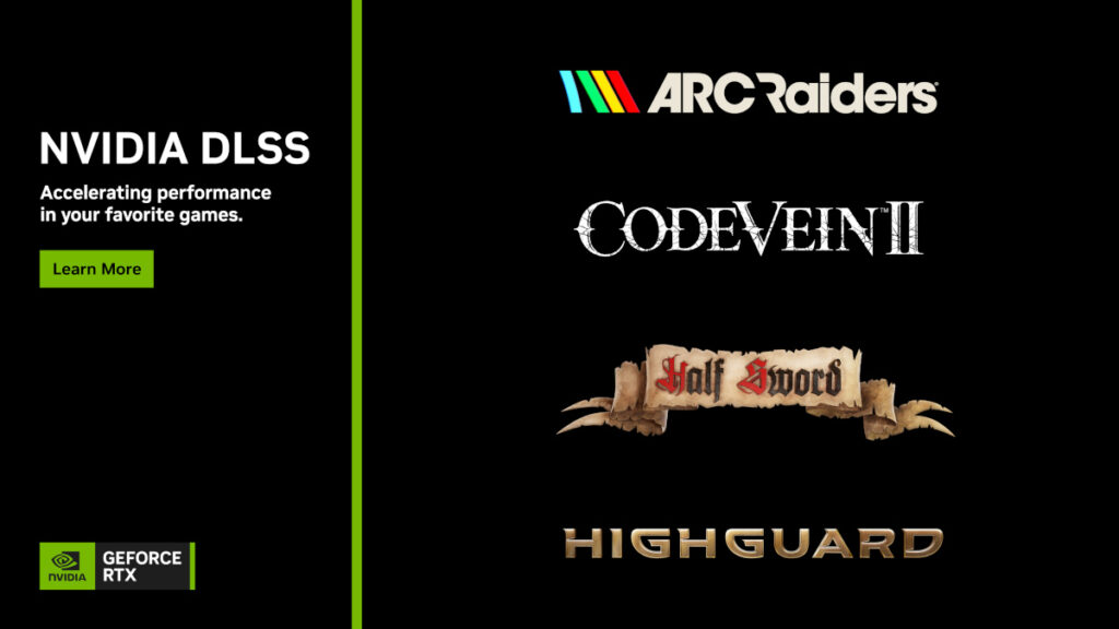 Анонс Remix Logic сопровождается выпуском новых игр с встроенной поддержкой технологий RTX. Среди них следует отметить Half Sword, экспериментальный проект, разработанный на RTX Remix, в котором применяется реалистичная физика средневекового боя с трассировкой лучей и продвинутым разрушением. Также было подтверждено, что CODE VEIN II, продолжение популярной ролевой игры в жанре экшн, будет иметь DLSS 3 и полную поддержку Reflex. Со своей стороны, Highguard, новая интеллектуальная собственность в стиле стимпанк, будет включать глобальное освещение RTXGI, блики с трассировкой лучей и DLAA для повышения резкости без ущерба для производительности.