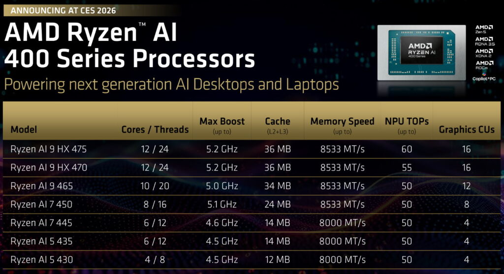 AMD представляет свои новые процессоры Ryzen AI 400, AI Max + и самый быстрый X3D для игр