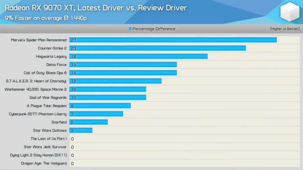 AMD Radeon RX 9070 XT получает бесплатный прирост производительности благодаря обновлениям драйверов