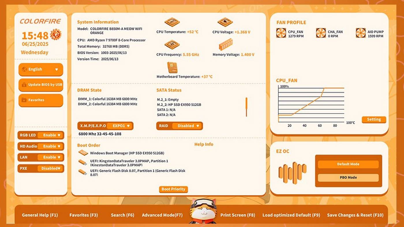 Да, Colorful представляет материнскую плату B850M в стиле «белого кота» с соответствующим оформлением BIOS
