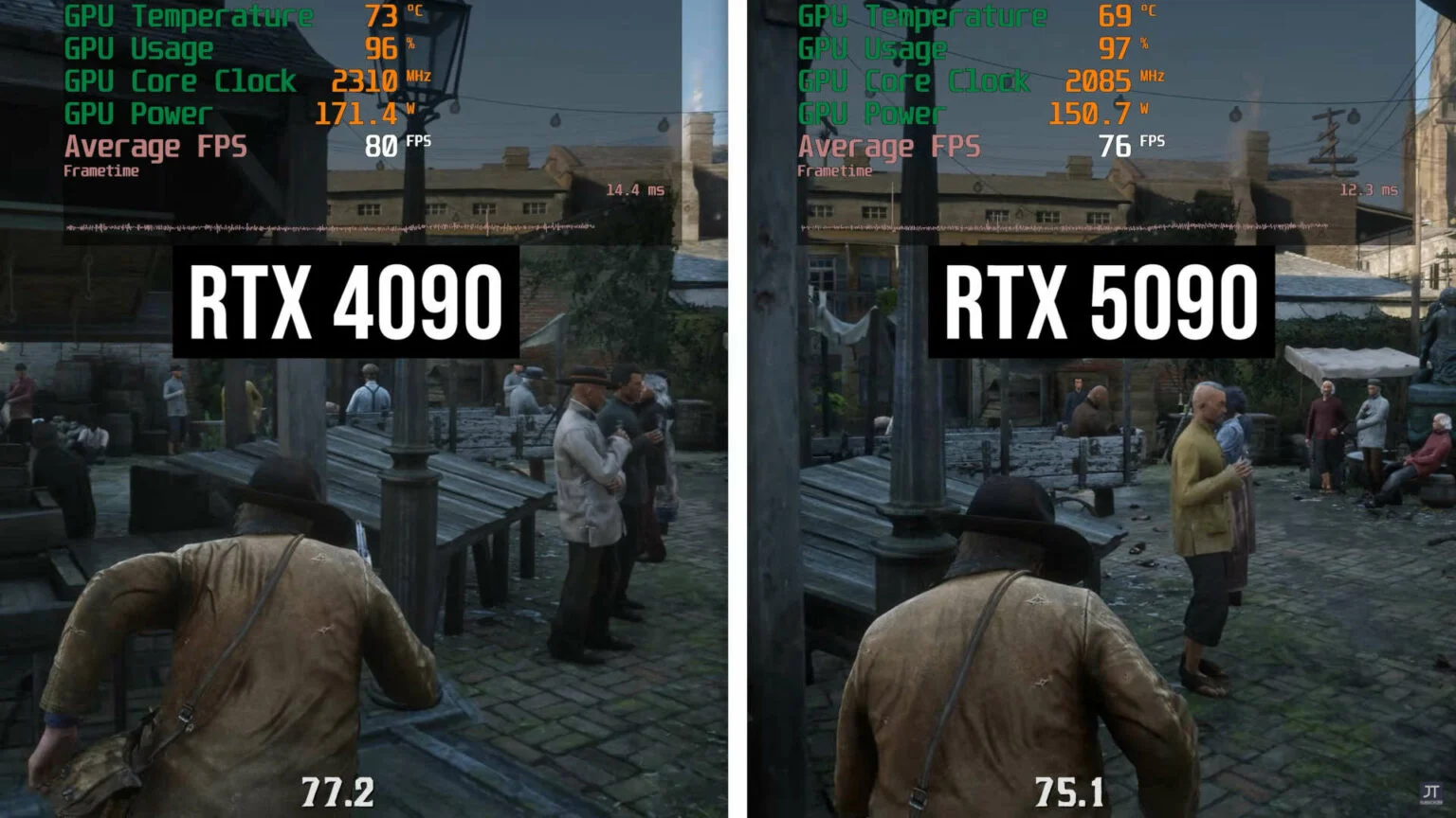 Хотя в большинстве случаев ноутбук RTX 5090 практически не уступал ноутбуку RTX 4090, в некоторых играх он значительно отстает. Red Dead Redemption 2 был худшим игроком в наборе Jarrod’s Tech, где новая графика показала результаты на 13-24% хуже.