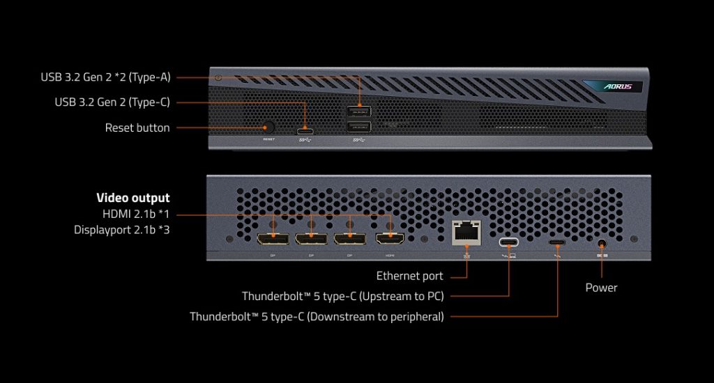 AORUS RTX 5060 Ti AI BOX подключается к любому ноутбуку или ПК через порт Thunderbolt 5, обеспечивая высокую пропускную способность и позволяя развивать высокий уровень производительности. При двусторонней связи этот порт достигает 80 Гбит / с.