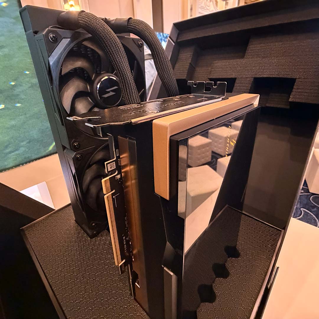 Несмотря на то, что 8-дюймовый графический дисплей является первым в мире, именно его технические характеристики вызывают у меня абсолютный восторг. Компания MSI создала этого монстра, способного выдерживать невероятно высокую нагрузку в 1000 Вт, благодаря двум разъёмам питания 12 В-2×6. Для сравнения: TDP по умолчанию для GeForce RTX 5090 составляет всего 575 Вт.