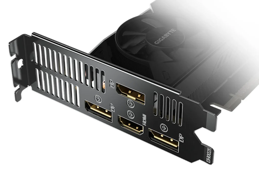 Что касается спецификаций, Gigabyte не поделилась более подробной информацией, чем Nvidia, поэтому мы сохраняем только наличие 8 ГБ памяти GDDR7 28 Гбит/с, работающей на 128-битной шине, и рекомендацию для блоков питания 450 Вт. Тем не менее, слухи утверждают, что графический процессор может иметь 3840 ядер CUDA, работающих на частоте 2497 МГц, разделяя 145 Вт TGP с памятью. Наконец, несмотря на свой низкий профиль, карта предлагает полный набор видеовыходов, включая три DisplayPort 2.1b и один HDMI 2.1b, все из которых можно использовать одновременно для многомониторных конфигураций.