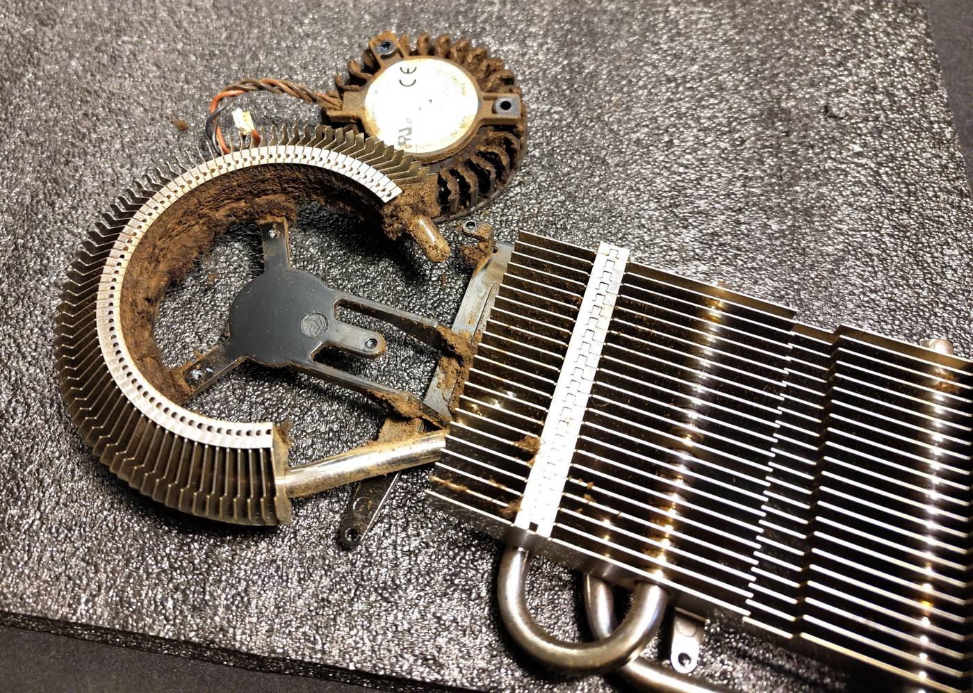 После получения видеокарты Asus ROG Matrix 9800 GT ютуберу Madness727 всё стало ясно. Ему пришлось разобрать всю видеокарту, чтобы очистить каждый её уголок. Судя по изменению цвета и запаху, 17-летняя видеокарта жила в комнате курильщика. После многих лет пропускания насыщенного никотином воздуха через рёбра радиатора видеокарта стала очень липкой и собрала столько пыли, что забился вентилятор.