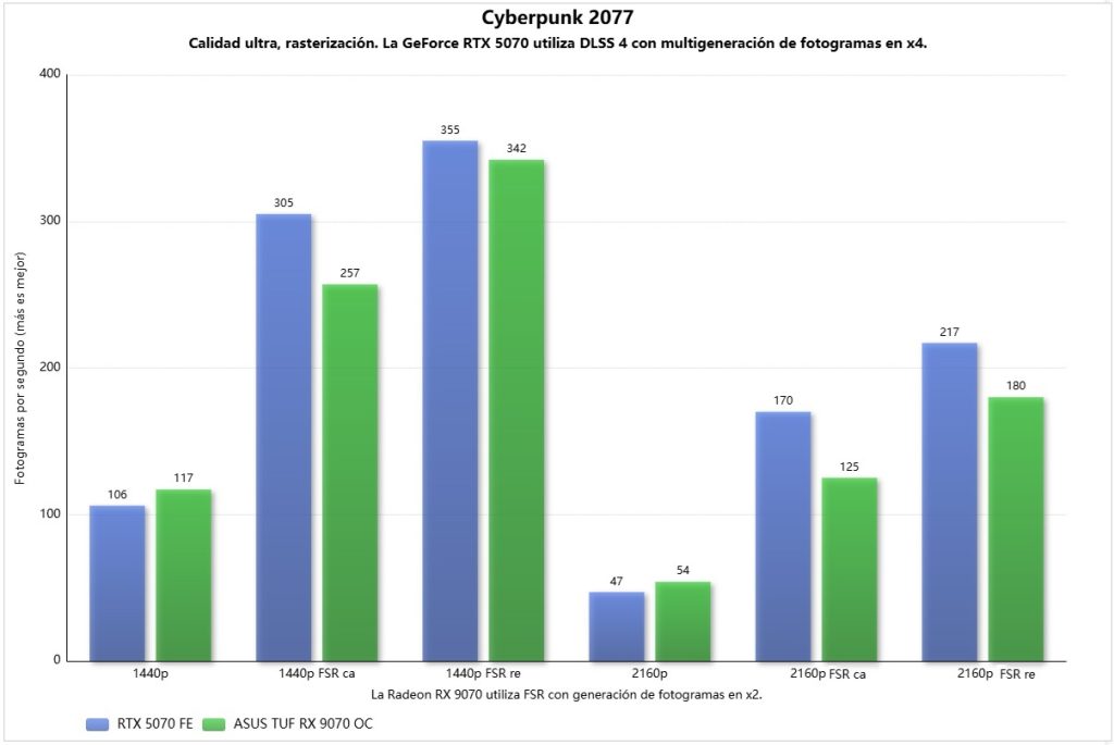 Radeon RX 9070 — это видеокарта, способная воспроизводить требовательные игры в формате 4K изначально и с максимальным качеством, но она не всегда обеспечивает скорость 60 кадров в секунду. Например, в Cyberpunk 2077 в исходном разрешении 4K и Ultra Quality средняя частота кадров составляет 54 кадра в секунду, а в Alan Wake 2 в разрешении 4K с максимальным качеством — около 36 кадров в секунду.