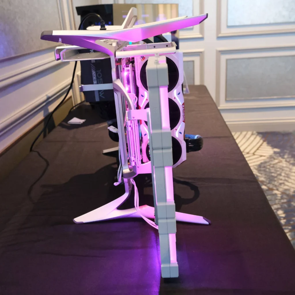 Основанный на вращающемся на 360° корпусе X Frame бренда, Shift представляет собой шасси испытательного стенда, полностью открытое для своего окружения. Изготовленный из алюминия, вы можете переключать Shift в несколько различных ориентаций, что позволяет использовать его в качестве испытательного стенда, аппаратного дисплея или просто производительной машины с достаточным охлаждением. Например, его рычаги, которые удерживают вентиляторы и радиаторы, могут поворачиваться в разных степенях в соответствии с вашей сборкой. Что касается основной рамы, вы можете разместить ее как горизонтально, так и вертикально в зависимости от предпочтений.