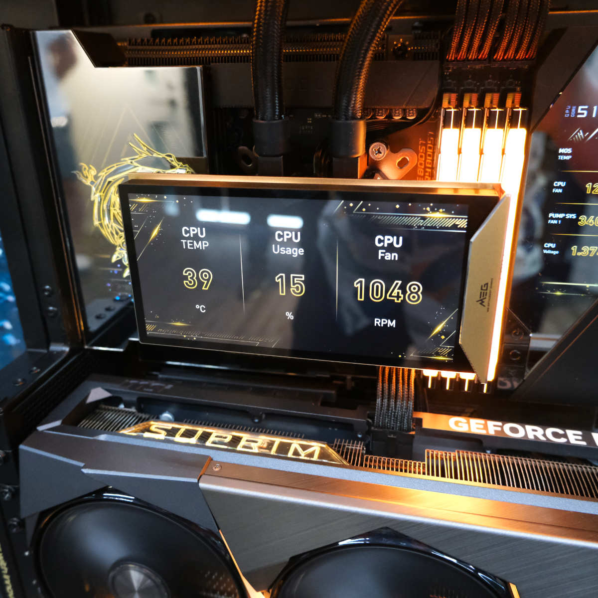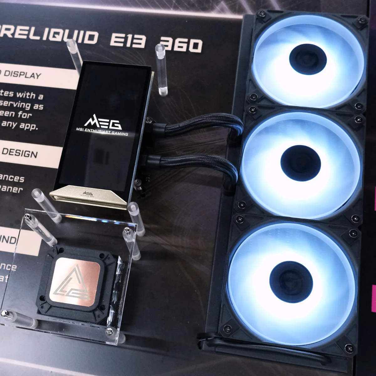 Благодаря предустановленному в MEG CoreLiquid E13 360 в рамках демо-версии шестидюймовому поворотному ЖК-дисплею пользователи могут просматривать системные показатели, мультимедиа или анимированные изображения.