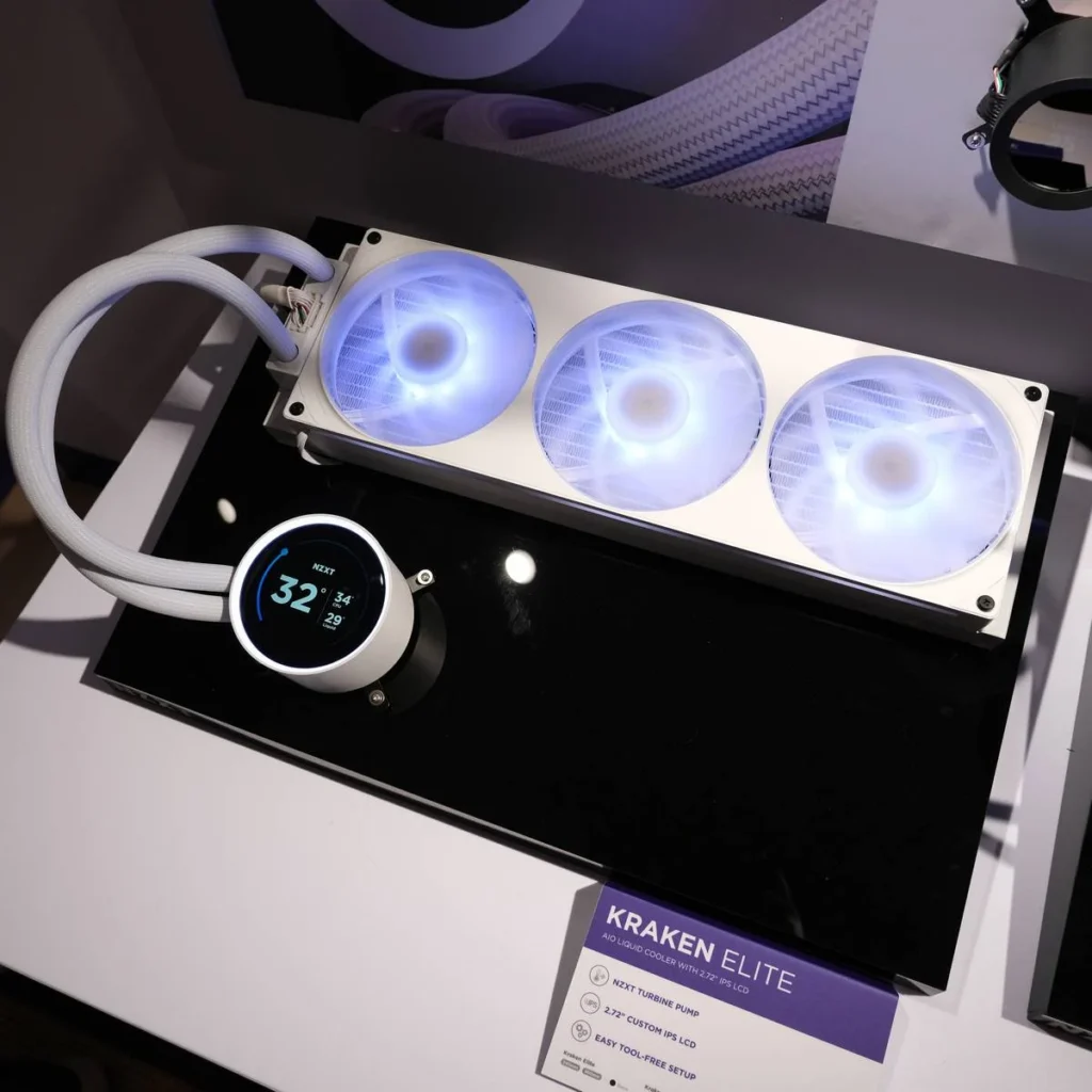 Тем не менее, те, кто предпочитает один из вариантов RGB, также могут быть заинтересованы в новом 420-мм кулере AIO этого бренда. Помимо большого алюминиевого радиатора 457 мм (Д) x 140 мм (Ш) x 27 мм (Г), Kraken Elite 420 RGB оснащен встроенным IPS-экраном с разрешением 640×640 и диагональю 2,72 дюйма, готовым отображать ваши любимые видео, GIF-файлы или изображения. Те, кто предпочитает более практичное использование, могут вместо этого отображать время, температуру оборудования или треки Spotify.