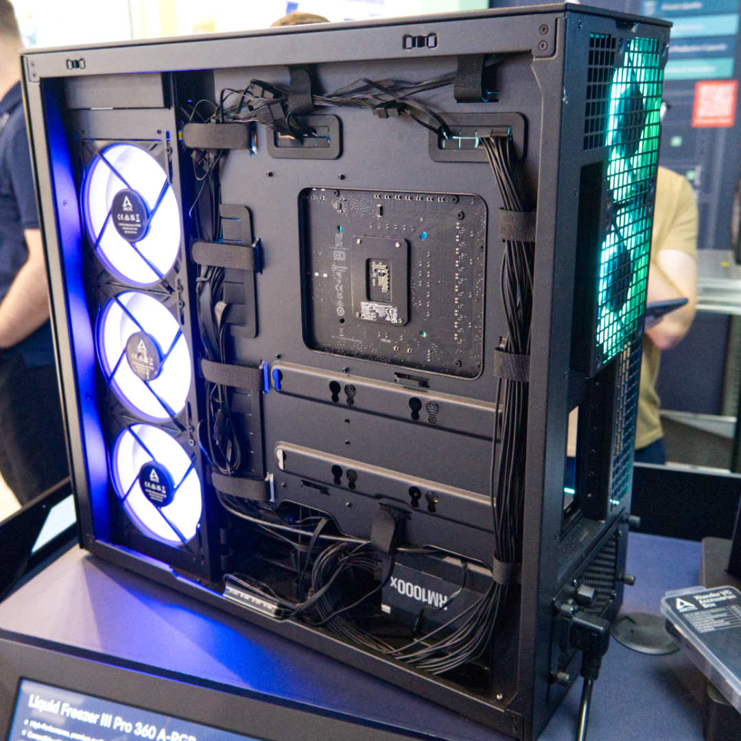 Заняв почетное место на выставочной площадке, серия Xtender сразу же заявляет о себе как о средней башне для энтузиастов с четкой родословной от корней охлаждения Arctic. Это не просто корпус, который оказался хорош в воздушном потоке; он разработан с нуля, чтобы дополнить и поднять экосистему вентиляторов и радиаторов Arctic, с поддержкой материнских плат E-ATX и не одного, а двух 420-мм радиаторов, установленных сверху и сбоку. Это почти чрезмерно, что в контексте охлаждения именно то, чего вы хотели бы от бренда.