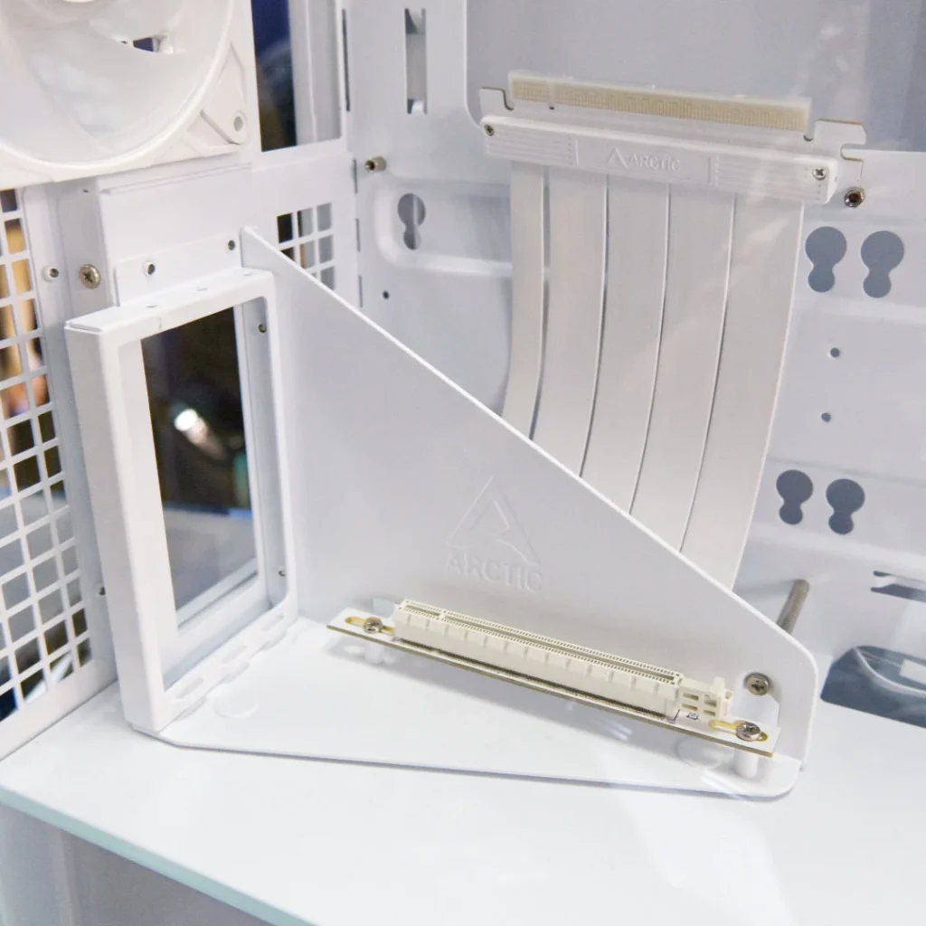 Охлаждение в стороне, очевидно, что этот корпус был построен с преднамеренными упущениями. Сзади нет выхлопа блока питания, но Arctic утверждает, что вырезы на боковой панели обеспечивают достаточную пассивную вентиляцию, чтобы компенсировать это. И хотя поддержка материнских плат в стиле BTF исключена (выбор, который Arctic объясняет ее низким принятием на рынке), модель VG имеет встроенную поддержку вертикального графического процессора через предоставленный переходник Gen 4, избегая сложностей Gen 5, с которыми многие производители корпусов боролись в прошлом году.