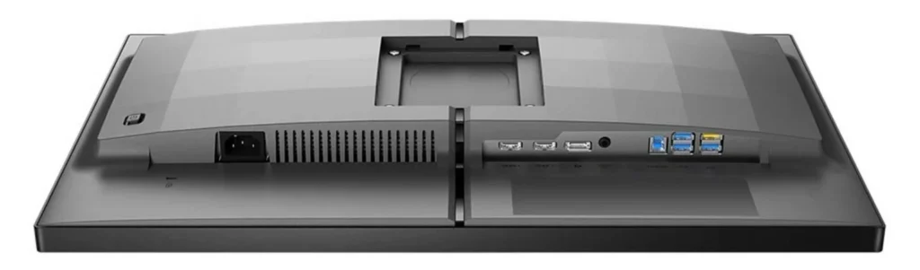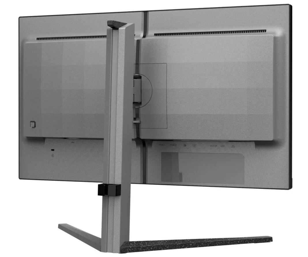 Для подключения мы получаем два HDMI 2.0, один DisplayPort 1.4, разъем для наушников и четырехпортовый USB-концентратор. Подставка полностью регулируется, предлагая высоту 130 мм, поворот на 90°, поворот на 30° и наклон -5/20°. С точки зрения дизайна 25M2N5200U следует стилю серии Evnia с квадратным узором сзади и тонкой подставкой. Однако эффект переработанного пластика на ножках может не всем понравиться.