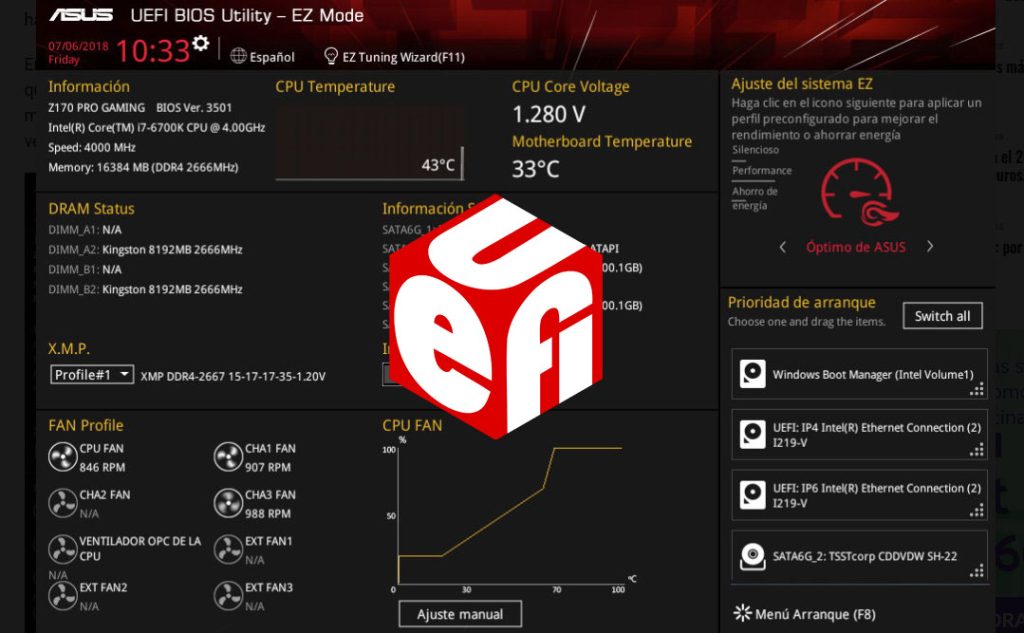На всех компьютерных компьютерах запрограммированы специальные клавиши, нажатие которых дает доступ к новой прошивке UEFI или к более старой версии BIOS. Они активируются нажатием определенной клавиши на этапе тестирования оборудования, которое происходит при загрузке персонального компьютера. Это позволяет нам получить доступ к базовым системам ввода/вывода, которые запускаются при загрузке оборудования, обеспечивая низкоуровневую связь, работу и базовую конфигурацию аппаратного обеспечения системы.