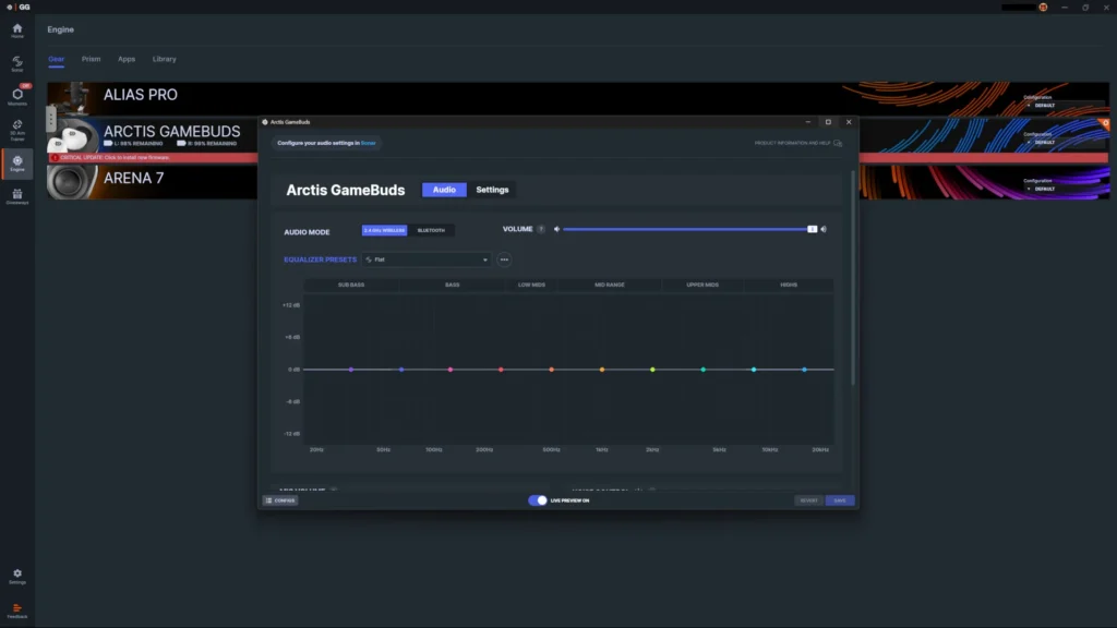 GG предлагает наибольшую функциональность из двух, позволяя вам создавать собственные эквалайзеры, которые вы затем можете перенести на свой смартфон. Непонятно, почему существует это разделение, но это легко простить. Обновления прошивки также возможны только через ПК, но это имеет смысл, чтобы избежать несоответствия прошивки с донглом 2,4 ГГц.