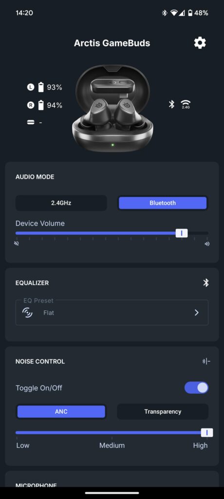 Как и другие периферийные устройства этого бренда, SteelSeries GG служит хабом, из которого вы можете настраивать Arctis GameBuds на своем рабочем столе. Между тем, приложение Arctis берет на себя эти обязанности на вашем смартфоне. Немного раздражает необходимость помнить два разных названия приложений, но вы быстро приспосабливаетесь после нескольких запинок.