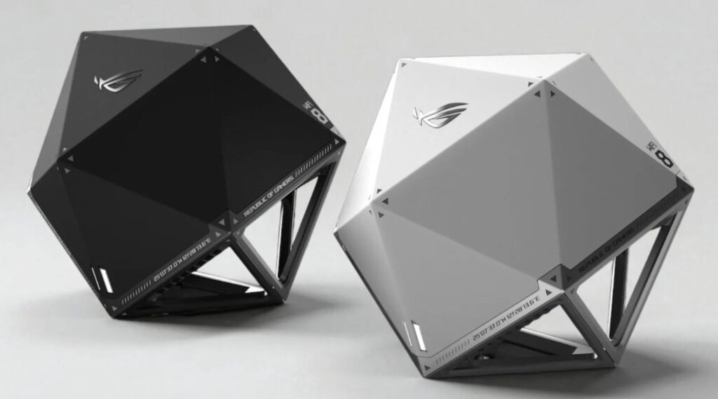 Мы также видели сетевые устройства, и самое интересное появилось со времен ASUS ROG, с моделью NeoCore, которая выглядит так, как будто она взята из научно-фантастического фильма и действительно выделяется среди всех других маршрутизаторов, которые мы видели, с этой формой икосаэдра, которую ролевые игроки узнают как 20-гранный кубик.