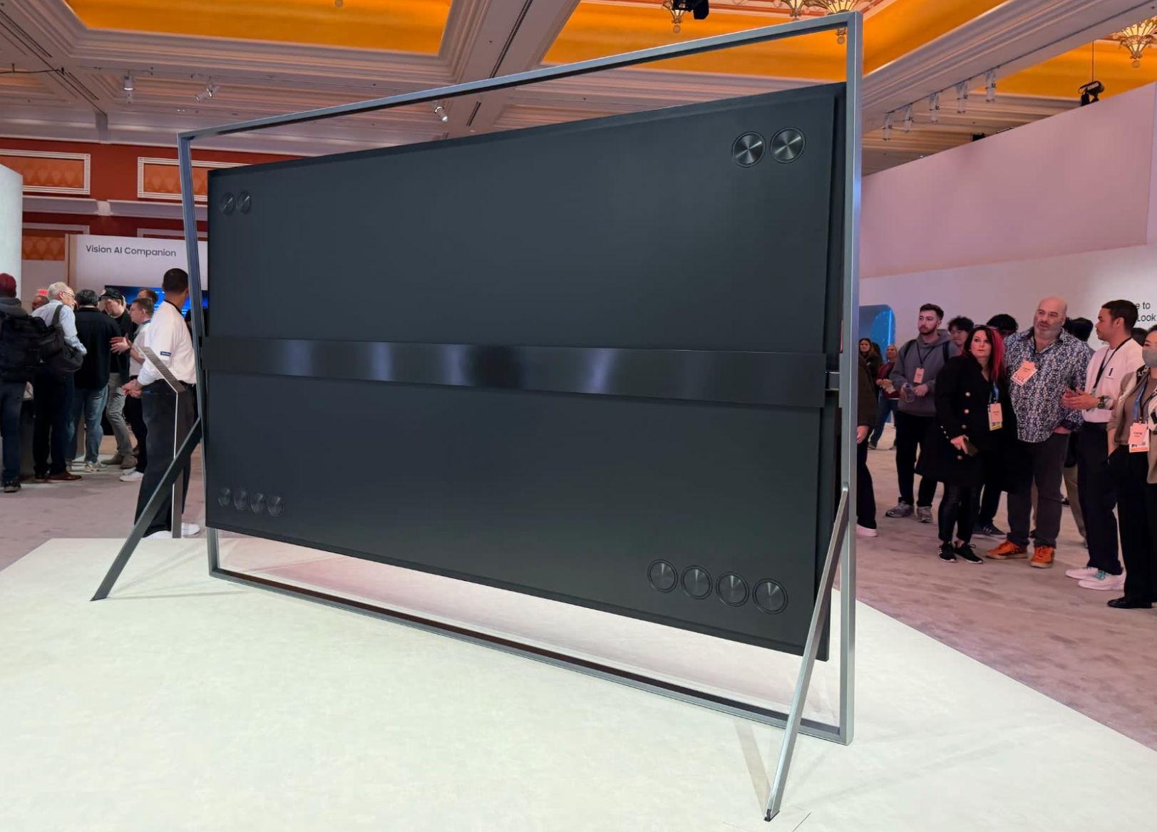 130-дюймовый телевизор Samsung micro RGB — это настоящее чудовище шириной почти три метра, которое компания привезла на выставку в Лас-Вегасе в качестве технологического образца, потому что на данный момент оно недоступно. Это также подтверждает ставку на этот тип панелей в качестве ориентира на будущее, как отметил в презентации Хун Ли, исполнительный вице-президент Samsung Electronics по области визуальных дисплеев (VD: